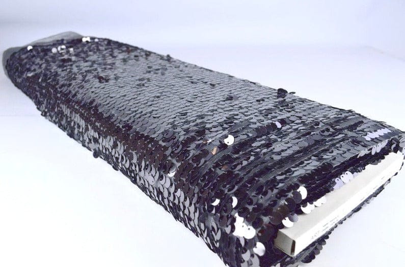 MÖRKGRÅ PALJETTYG MED STORA PALJETTER OCH STRETCH