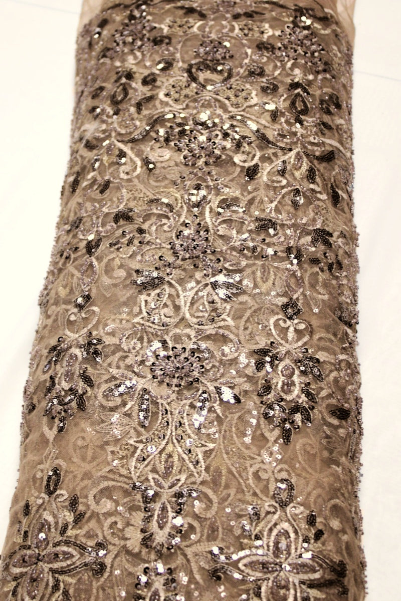 BEIGE TYLLTYG MED PALJETTER OCH PÄRLOR