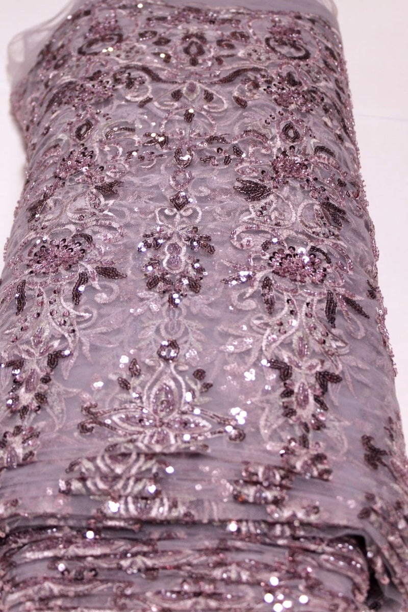 LAVENDEL TYLLTYG MED PALJETTER OCH PÄRLOR