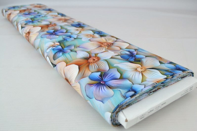 LJUSBLÅTT VISCOSETYG MED VITA OCH BLÅ BLOMMOR - DIGITAL TRYCK
