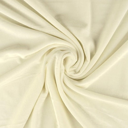 Vår stretchvelour (Mode): Dessa tyger innehåller ofta en blandning av polyester och elastan (t.ex. Lycra). Tillsatsen av elastan gör tyget smidigt och töjbart, vilket är perfekt för kroppsnära kläder som omlottklänningar och toppar, då det ger hög komfort utan att mista formen.