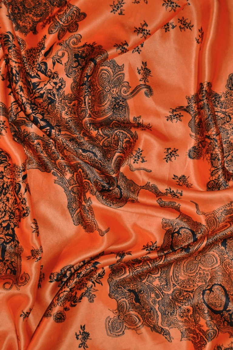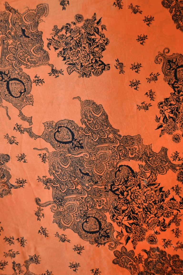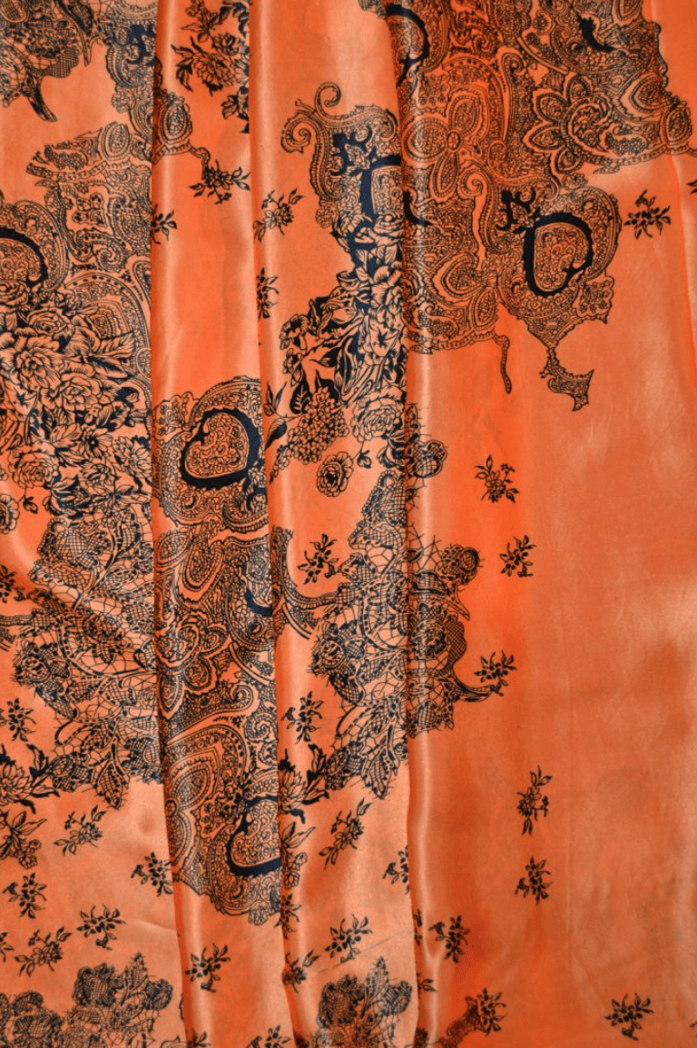 ORANGE SIDEN MED MÖRK BLADMÖNSTER