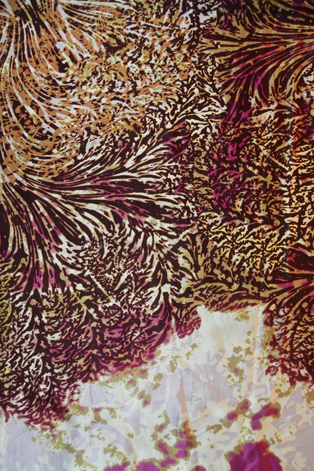 Letar du efter lyxigt sidentyg med tryck? Vårt exklusiva siden kännetecknas av sin fantastiska glans, mjukhet och lätta kvalitet. Tyget känns behagligt mot huden och är perfekt för elegant kläder såsom skjortor, klänningar, scarves, underkläder och nattkläder.