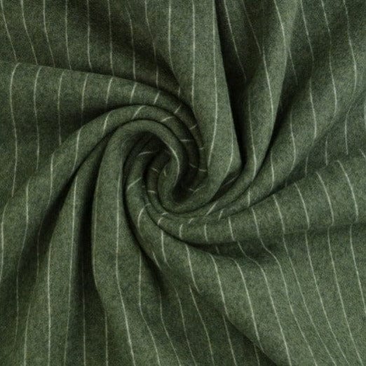 - Elegant randigt design: Vår flanell har en klassisk design med vita, tunna ränder, som är placerade med exakt 15 mm mellanrum på en djup, dammig mörkgrön bakgrund. Detta ger tyget ett tidlöst, men samtidigt modernt uttryck som passar perfekt in i en minimalistisk och nordisk stil.