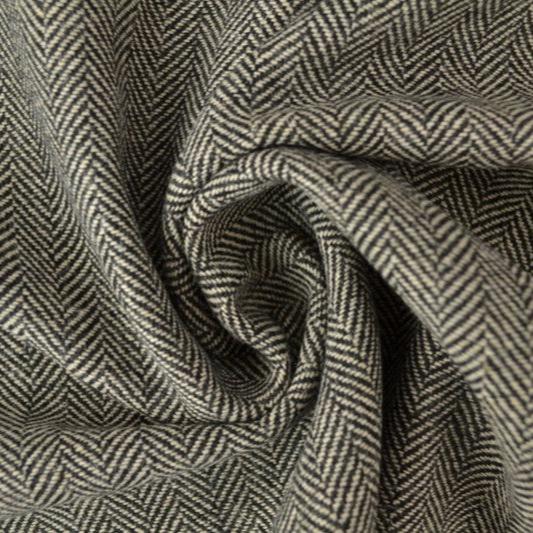 Detta tyg är en högkvalitativ blandning av ull och polyester, vävd i klassiskt sillbensmönster. En enda rad av raka ränder på mönstret mäter ca 1 cm. Tweedtyget har en lätt ullig yta och med en vikt på 300 g/m² är det ett relativt tungt och robust material. Både ull och polyester är motståndskraftiga mot skrynkling, och kombinationen av polyesters slitstyrka med ullens värmeisolerande och absorberande egenskaper resulterar i ett tåligt, bekvämt material som passar perfekt till exempelvis rockar, kavajer, väskor m.m. Tweed är dessutom ett populärt material för kostymer, bland annat på grund av det stilfulla och tidlösa mönstret.