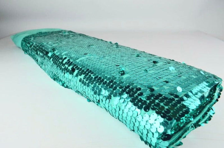 HAVSBLÅ PALJETTYG MED STORA PALJETTER OCH STRETCH
