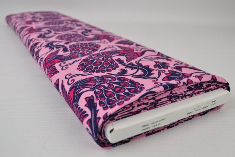 LJUSROSA VISCOSETYG MED PÅFÅGEL TRYCK