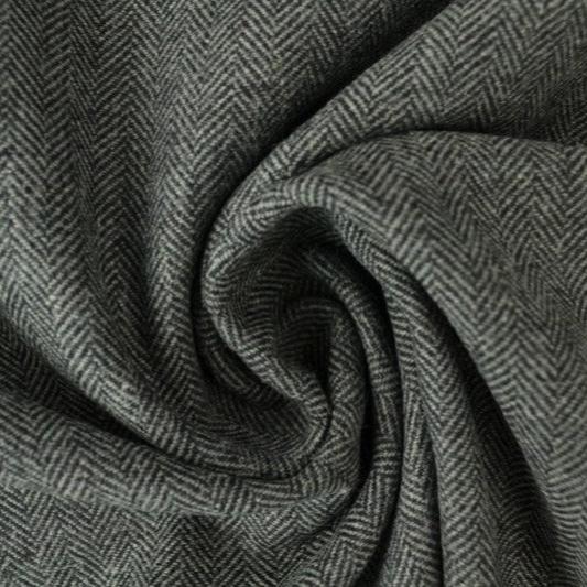 MÖRKGRÅ YLLETYG MED TWEEDSTRUKTUR OCH SILLBENSMÖNSTER