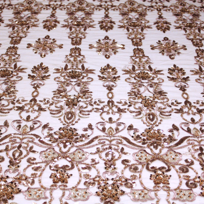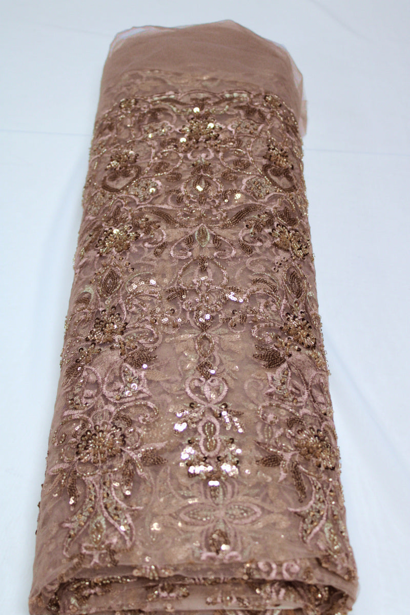 MÖRK VINTAGE LJUSROSA TYLLTYG MED PALJETTER OCH PÄRLOR