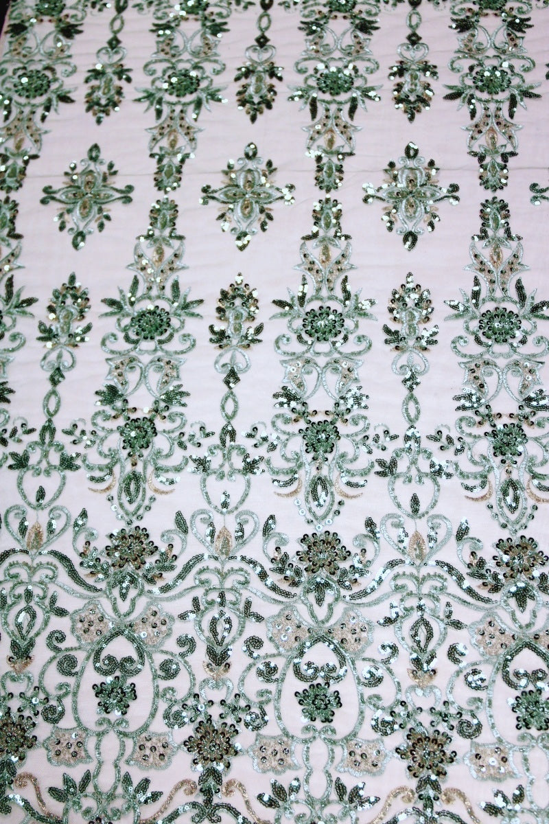 VINTAGE GRÖNT TYLLTYG MED PALJETTER OCH PÄRLOR